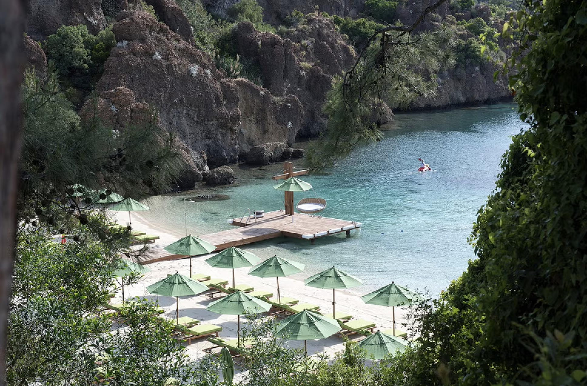 The nearest airports are Dalaman (just under two hours away by car) and Bodrum (about to two and half), both offering international connections and a scenic introduction to the region’s wild beauty. From either, the drive winds through mountains blanketed in pine, past glimpses of turquoise sea and sleepy villages where time seems to pause. For those arriving by water, the bay is a favorite stop for yachts cruising down from Bodrum or Göcek, with tender service delivering guests straight to shore. And then there are the helicopters—landing not infrequently on the resort’s private pad—offering the quickest, most dramatic arrival of all. However you get there, the final descent into the cove feels like slipping behind a curtain into someplace private, privileged, and utterly unreal.